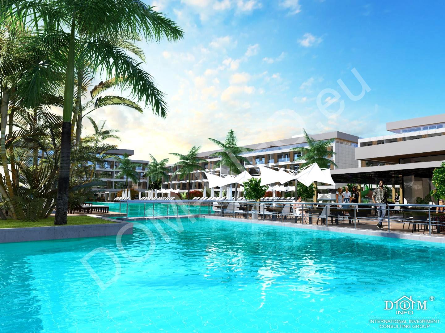 Комплекс с инфраструктурой 5-звездочного отеля. Комплекс расположен в Искеле на побережье Лонг Бич, одной из красивейших береговых линий острова, где есть вся необходимая инфраструктура: пешеходные и велосипедные дорожки, спортивные и детские площадки, места для пикника, а также чистейшее лазурное море и песчаный пляж. Этот комплекс имеет большую территорию и многообразные зоны отдыха, хорошо продуман в соответствии с пожеланиями клиентов.