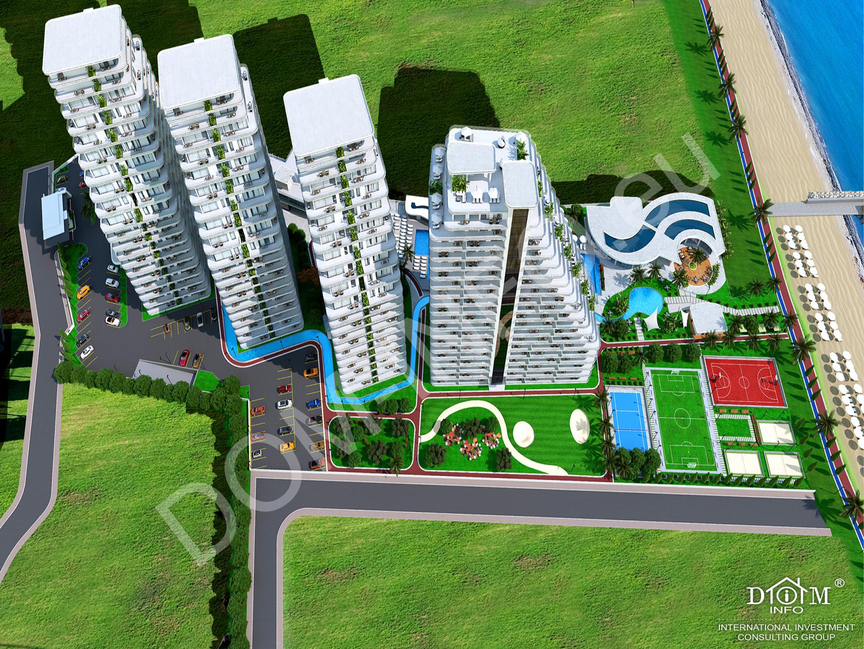 Совершенно новый уникальный проект прямо на берегу моря со своим пляжем и пристанью для яхт в Гюзельюрте, в самом зеленом регионом острова. Состоит из 4 блоков высотных домов, расположенных на площади 24 тыс. кв. м. Каждый блок имеет 20 этажей. Турецкий титул.