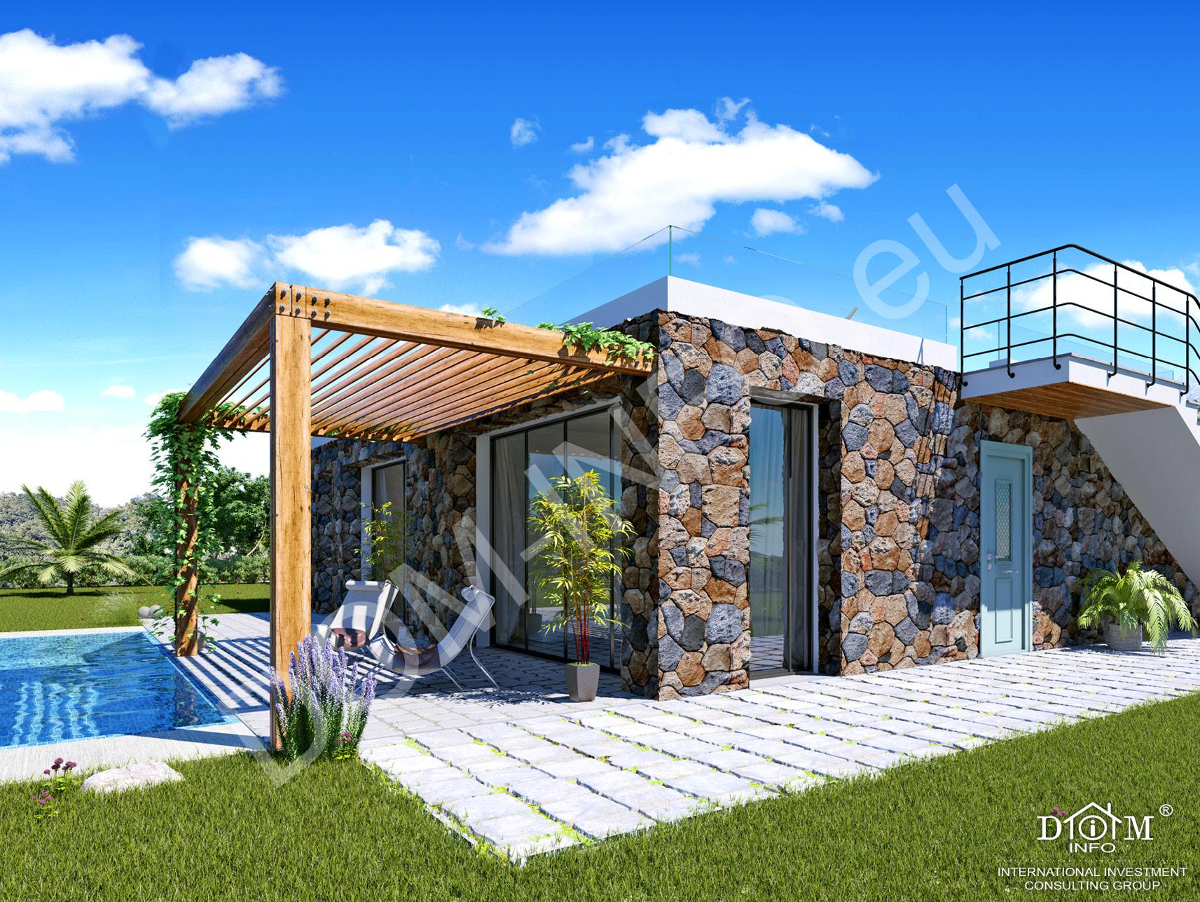комфортабельными виллами с террасами и бассейнами.