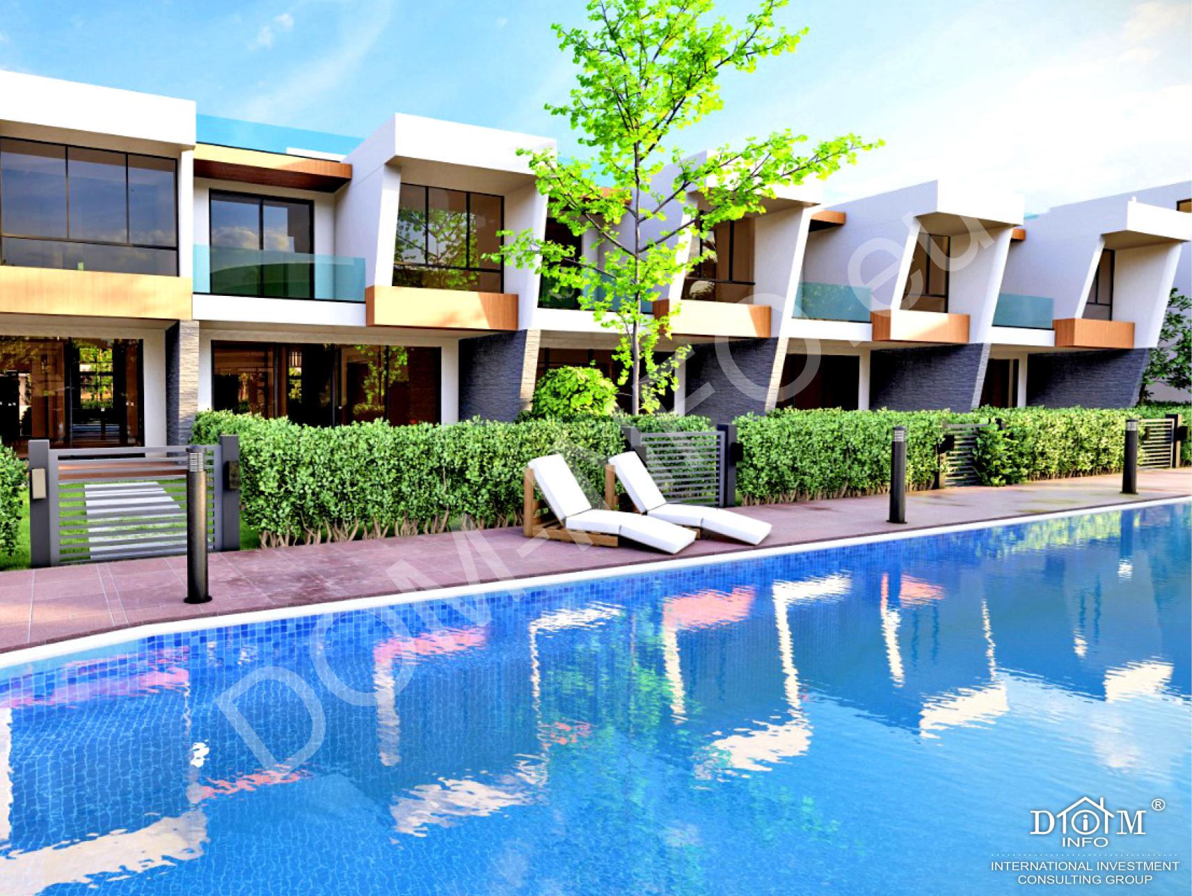 Состоит из трех типов вилл и таунхаусов площадью 183 и 274 кв. м и апартаментов-студий, 1+1 и 2+1. Это уникальный проект в окружении цветущих и плодовых садов.