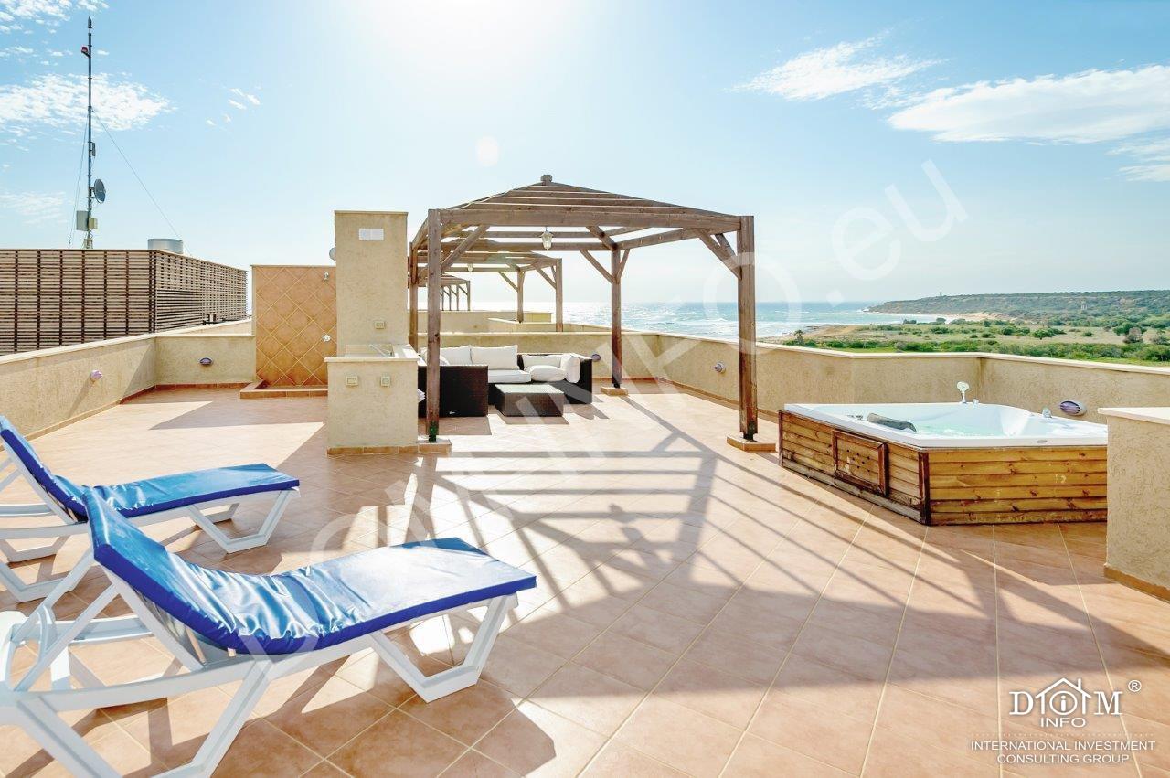 - Собственная терраса на крыше с джакузи, барбекю, душем и перголой