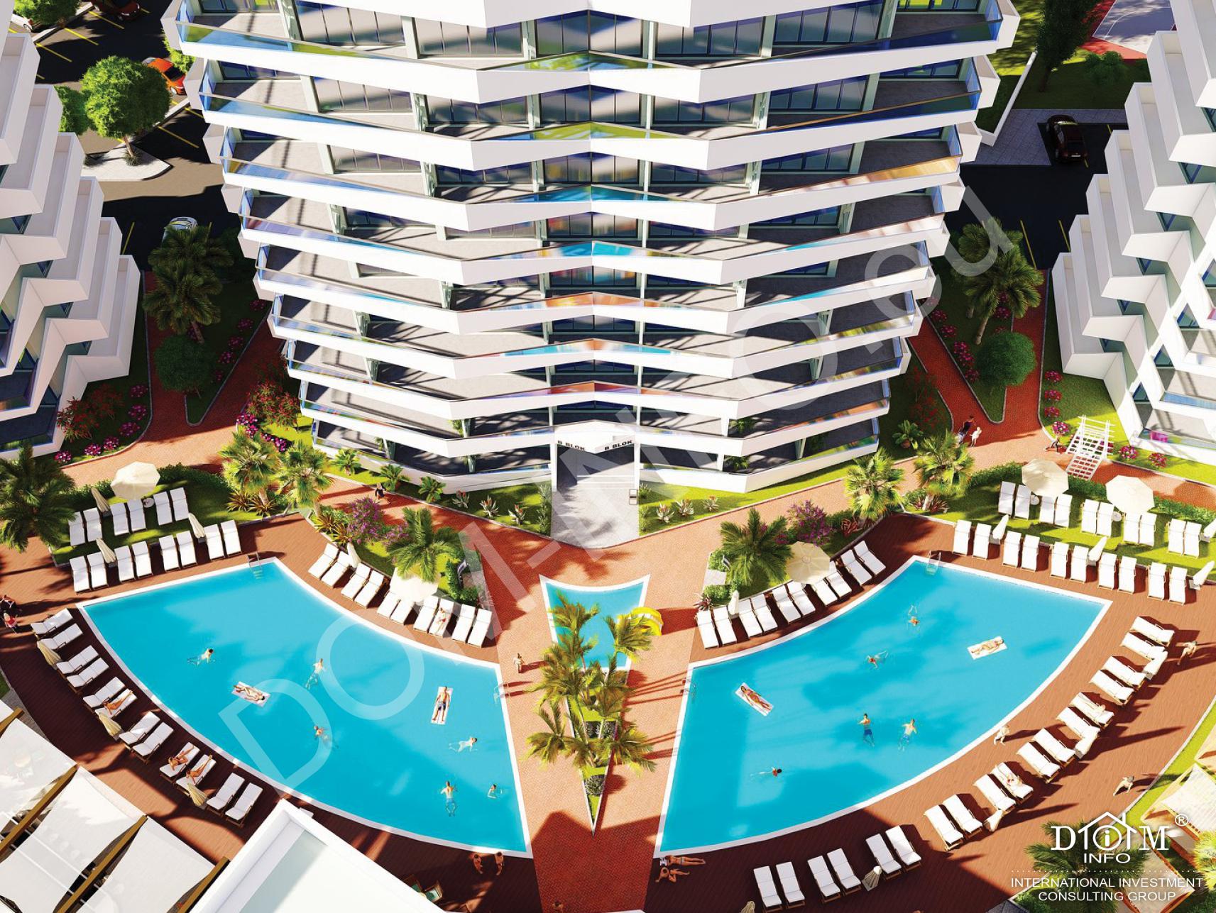 Апартаменты 1+1 в элитном жилом комплексе в Искеле, район Лонг Бич, который будет работать круглый год. Первый взнос – 30%. Рассрочка 4 года.
