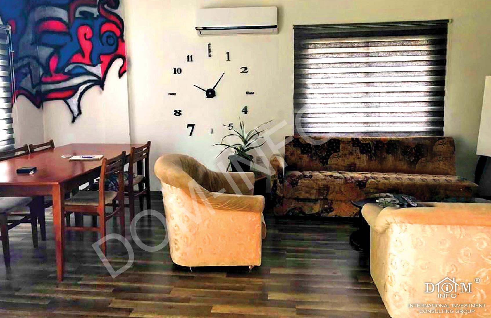 Все три спальни меблированы, имеется: кровати, шкафы, кондиционеры и другая мебель. На окнах жалюзи, на полу – паркет. Сделан ремонт.