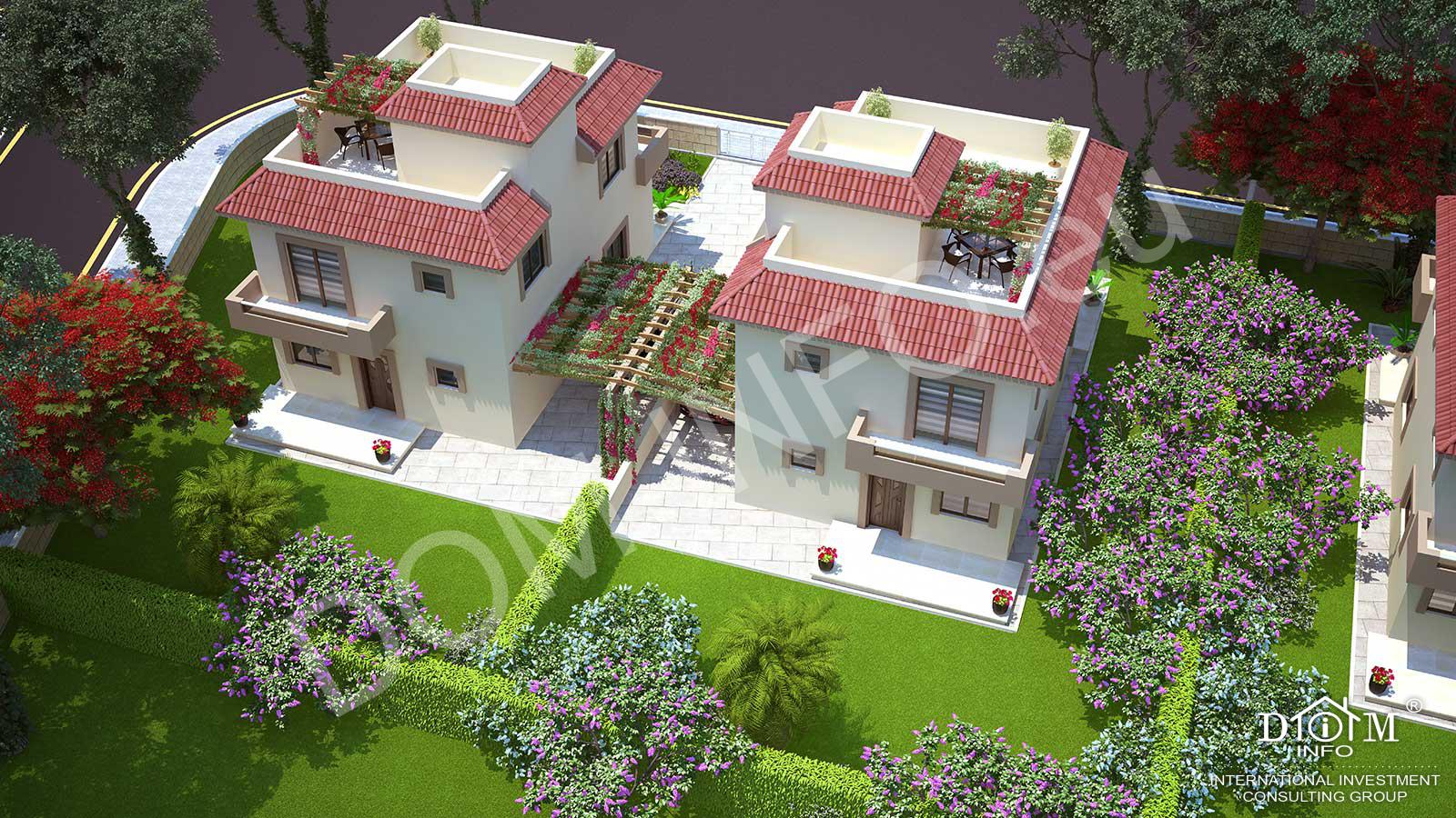 Состоящий из 52 150m2- 170m2 вилл, этот сайт предлагает общие зеленые зоны, бассейны, детские площадки и безопасность.