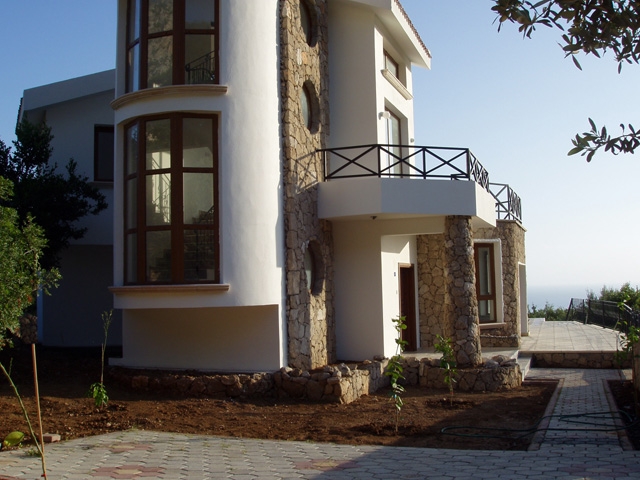 Зарезервирована. Четырехкомнатная шикарная вилла 292м² в километре от пляжа. Очень красивые и интересные по архитектуре виллы, которые имеют превосходные виды моря и гор Северного Кипра.