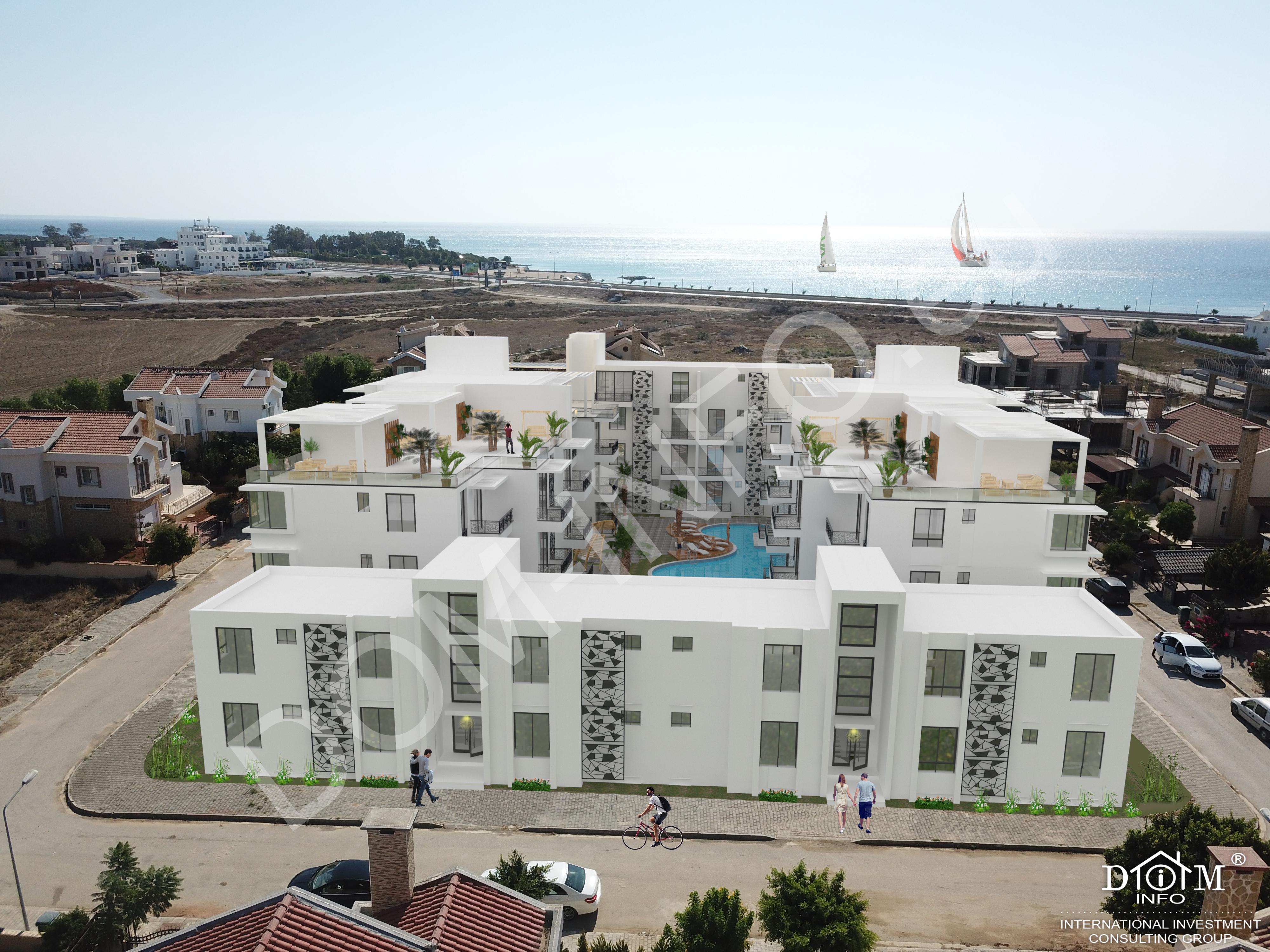Апартаменты в новом современном комплексе, расположенном прямо на берегу моря с кристальной водой и благоустроенным песчаным пляжем в одном из красивейших мест на Северном Кипре, рядом с Богазом в нескольких минутах езды от Фамагусты.
