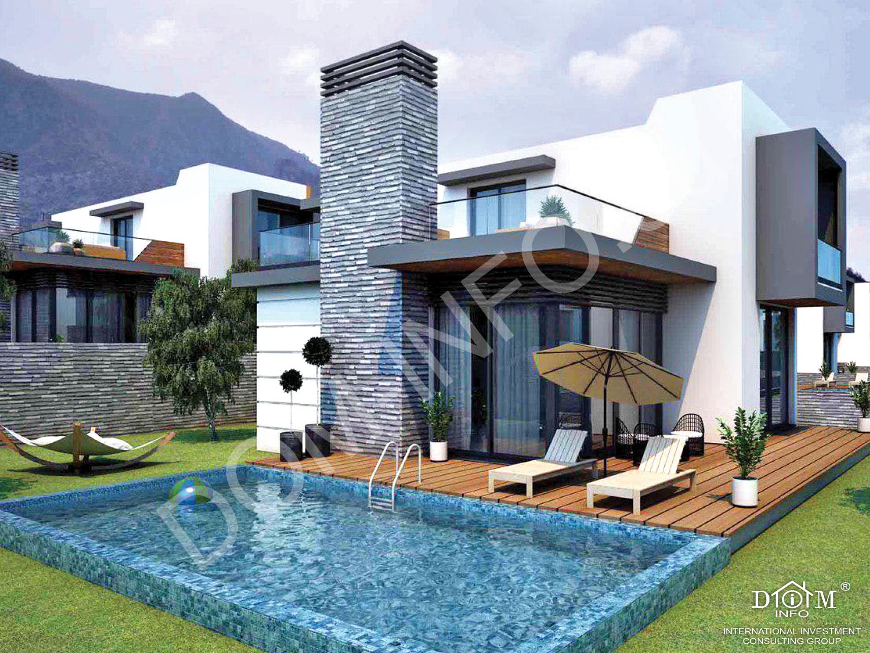 Проект размещен на участке из 26 вилл (175 м2 и 215 м2) с великолепным видом на море и горы.